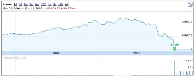 On a “hot tip” from a co-worker, I invested in a company that was earning a ton of money and seemed to have only one future path - grow, grow, grow! In late 2006 I invested what was, for me, a pretty big chunk of money. Here’s the stock’s performance from 2006 to shortly before I sold it in 2010:
